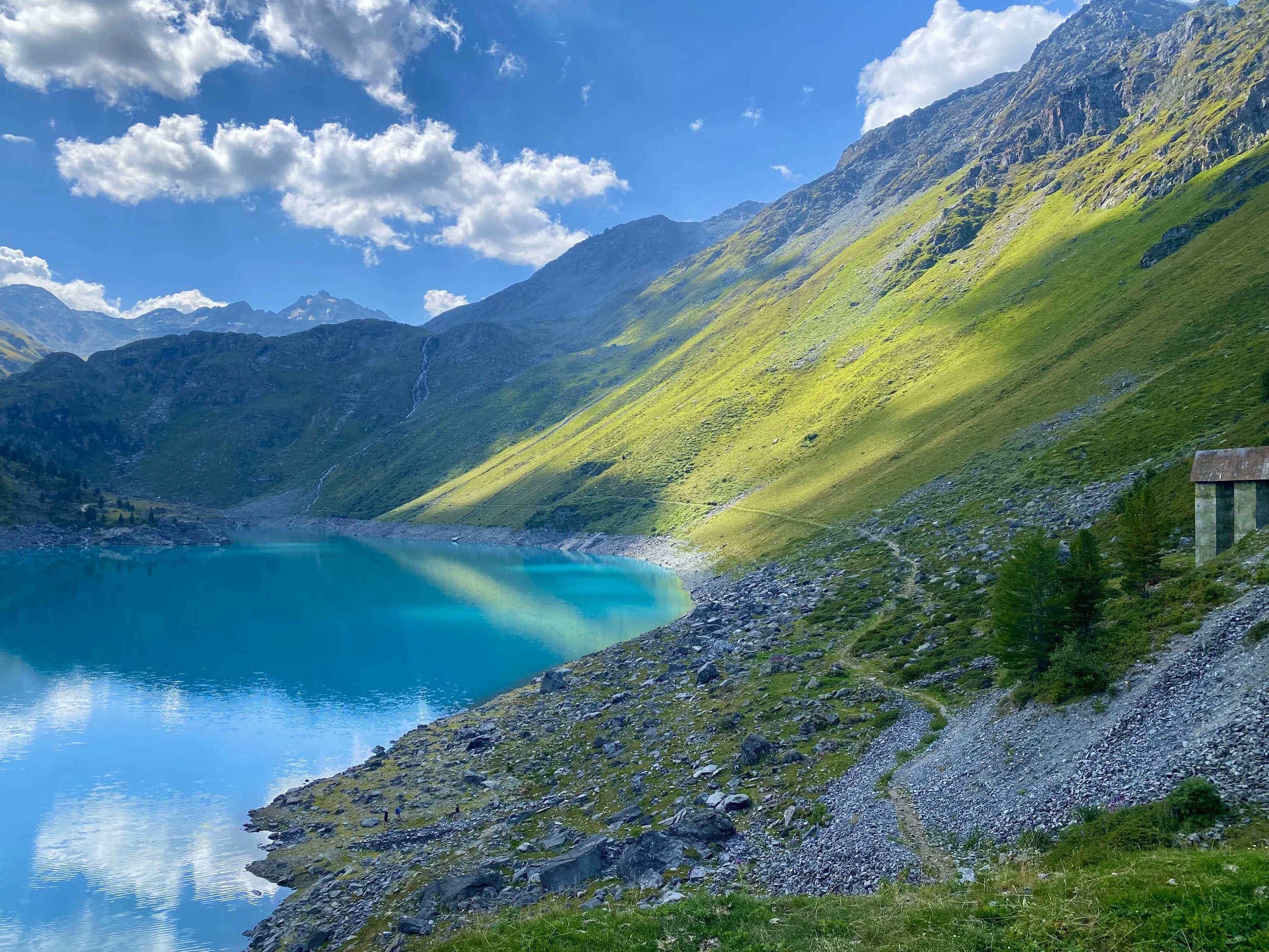 After a month spent weaving my way through olive groves and avenues of Italian cypress, the train rocked back down towards Milan before crossing into Switzerland. The landscape shifted dramatically: wide valleys unfurled on either side of the tracks, lined with lush, abundant vines and Alpine lakes. Beside me sat a man carrying an axe - something that would set me on edge back in the UK. Here, though, he looked more like a climber than a threat, and I soon lost myself in my book, glancing up every so often to soak in the views. During my time in Switzerland, the most memorable stretch was the journey from Sachseln to Interlaken, watching the carriage skim the edges of Lake Sarnen and the brilliant turquoise waters of Lake Brienz.